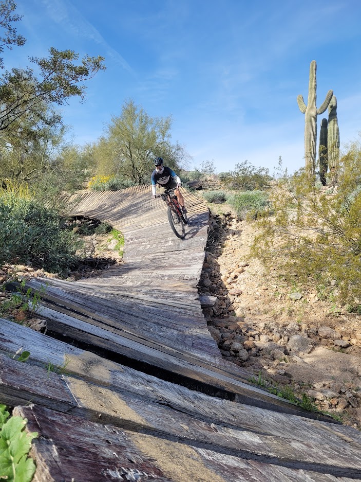 We left the Pirate trails crossing under Estrella Pkwy on our way to the newer Lucero trails. Yet another set of trails hand built by the locals.