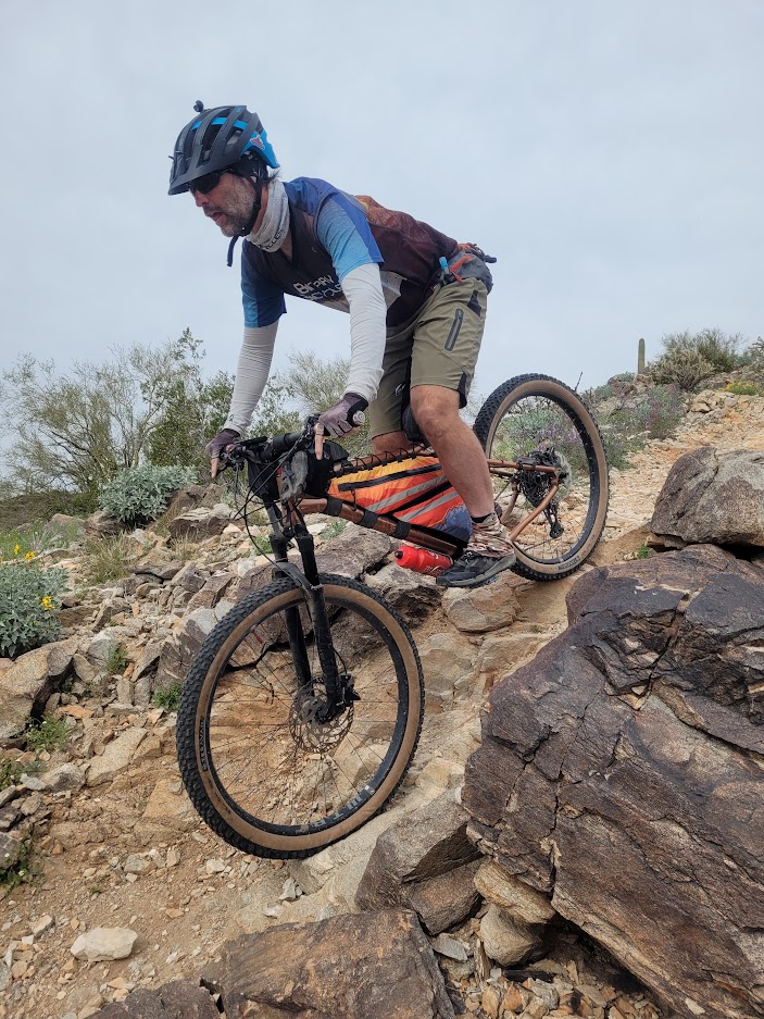 We met at a trailhead next to F.I.N.S. (Fantasy Island North Singletrack), named after a trail system in Tucson called: Fantasy Island. There were a handful of trails here that I wanted Mike to ride, so off we went.